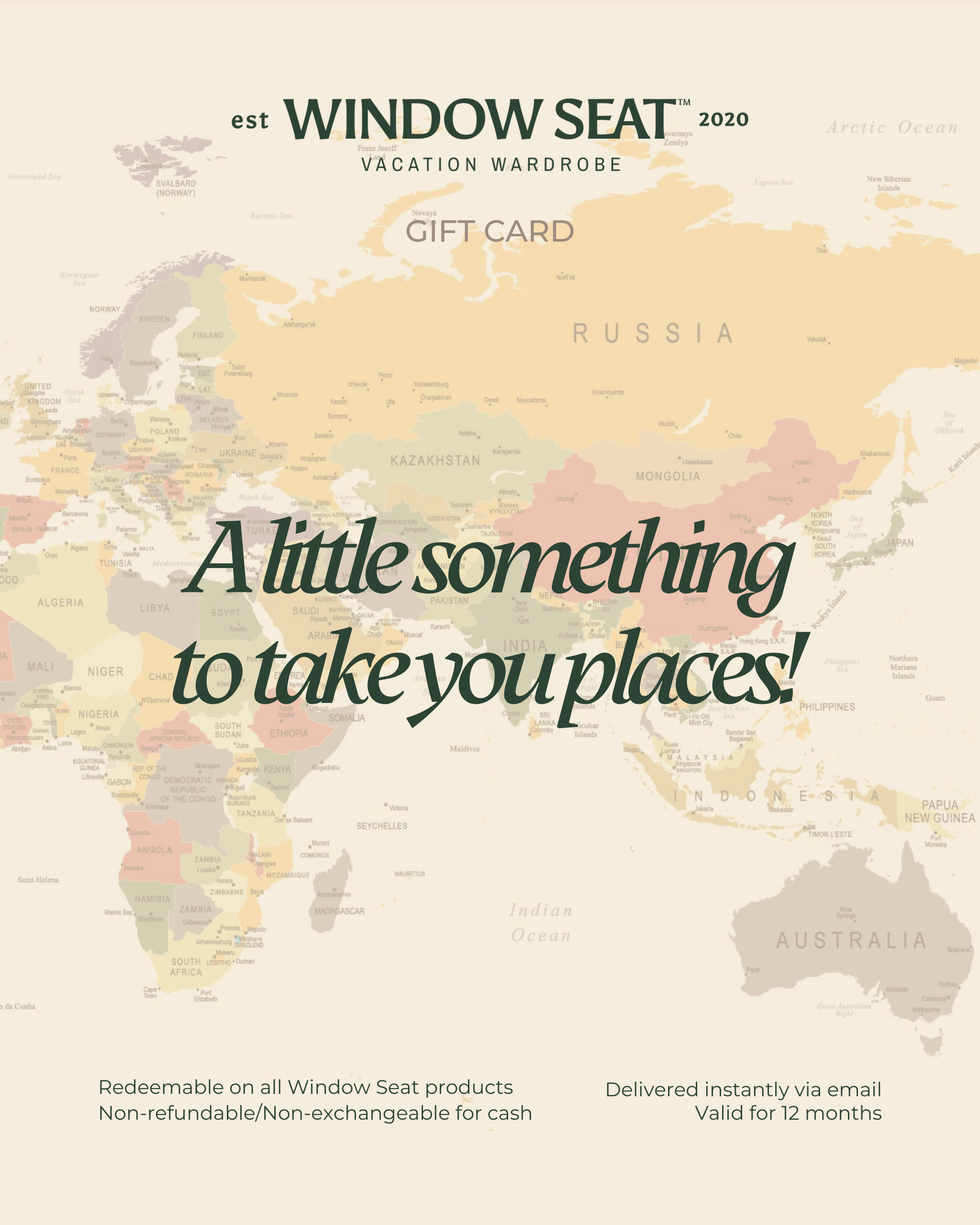 Whether they’re boarding a flight or just dreaming of one, a Window Seat gift card is an easy ticket to sunshine shirts, and the feeling of being elsewhere.