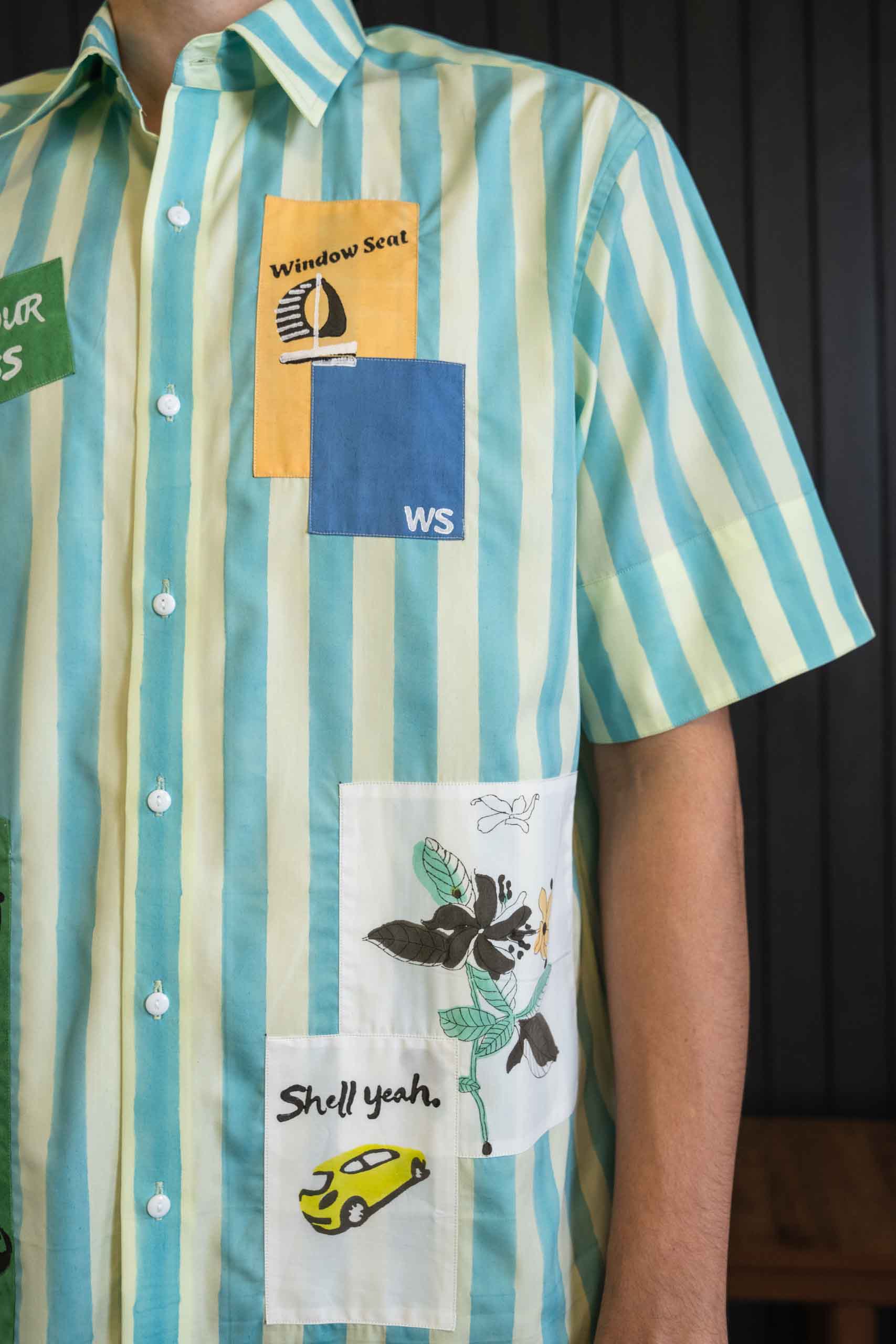 Striped Patch Shirt - Cotton Tencel | Classic Collar | Short Sleeves
