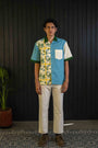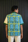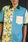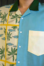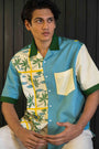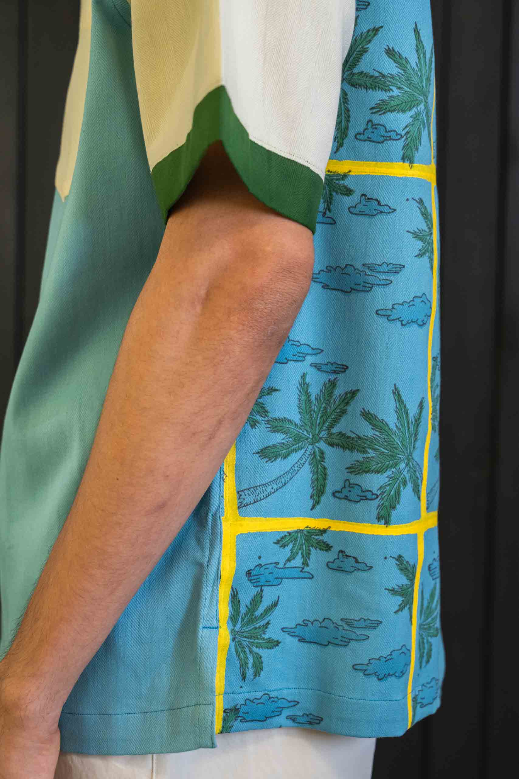 Tailored from herringbone cotton, it balances structure with breathability. The split-tone body — cream and sea blue — is laced with strokes of lemon yellow, a nod to the region’s iconic citrus groves and sunny spirit
